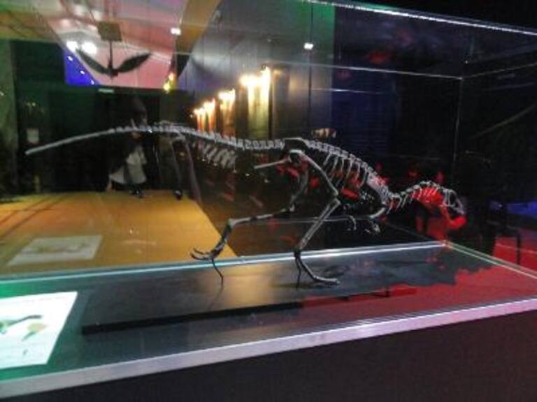 Este es uno de los fósiles hallados recientemente en la Patagonia.Gasparinisaura cincosaltensis es uno de los especímenes más antiguos del mundo. Medía aprox. 1 metro, pesaba 5 kilos y era carnívoro.