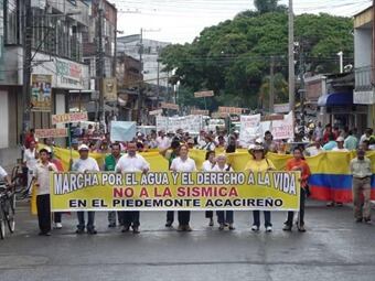 Habitantes de Acacías marcharon en las últimas horas por las calles del municipio para rechazar un proyecto de exploración sísmica que se adelanta en el piedemonte llanero y que pondría en riesgo, según los pobladores, los recursos hídricos de esta zona.