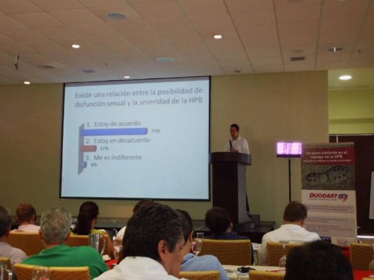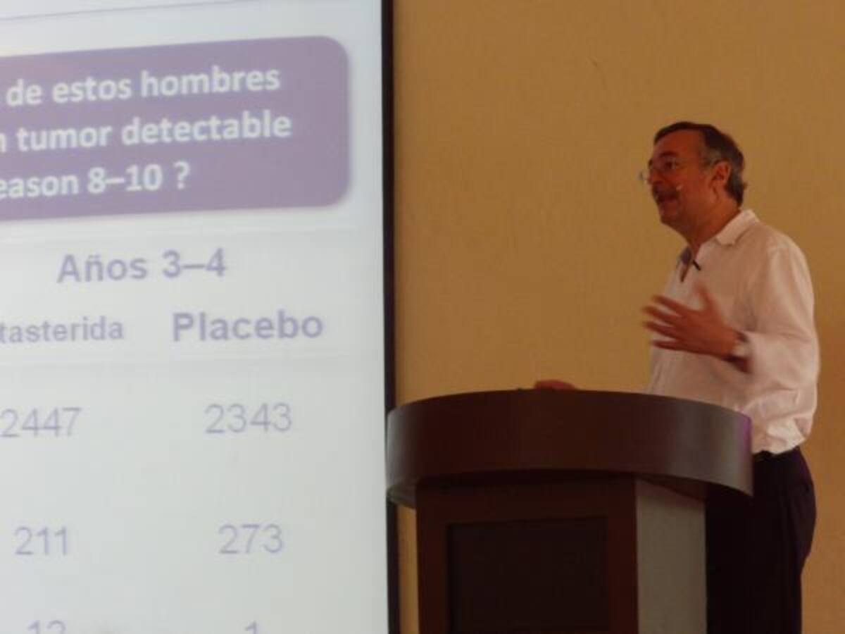 Dr. Alejandro Carvajal en su intervención sobre los eventos adversos sexuales y tratamiento para la hiperplasia.