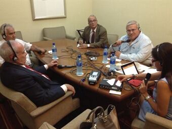 Sergio Ramírez, Manuel Madríz, Edén Pastora, Adolfo Pastran, Indalecio Rodríguez y Jack Hosni, los panelistas del debate este martes, bajo la dirección de Diana Calderón