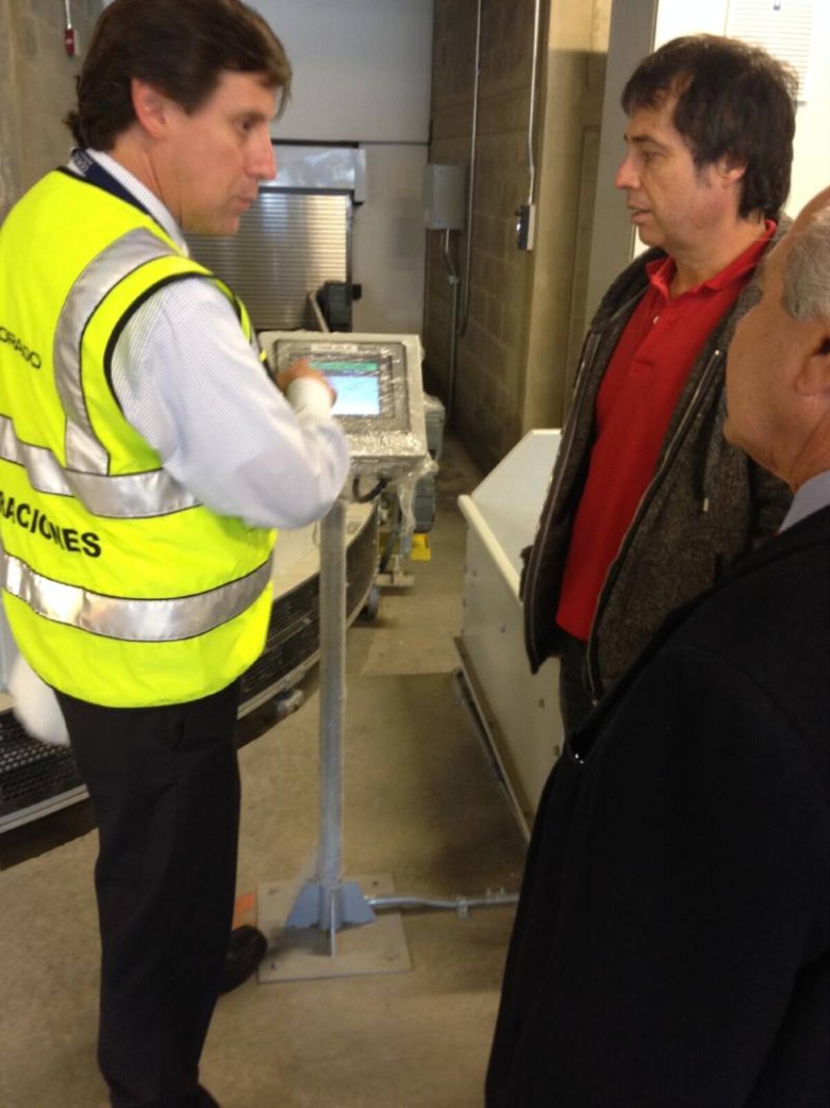 Funcionarios de Opaín explican a Darío Arizmendi y César Augusto Londoño los desarrollos tecnológicos. Foto: Caracol Radio.