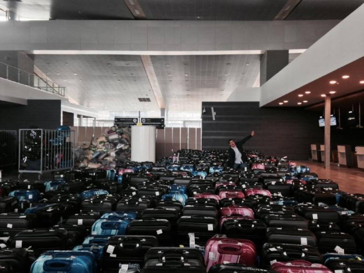 No es congestión: son 10 mil maletas con las que se hacen las pruebas de operación. Foto: Caracol Radio.