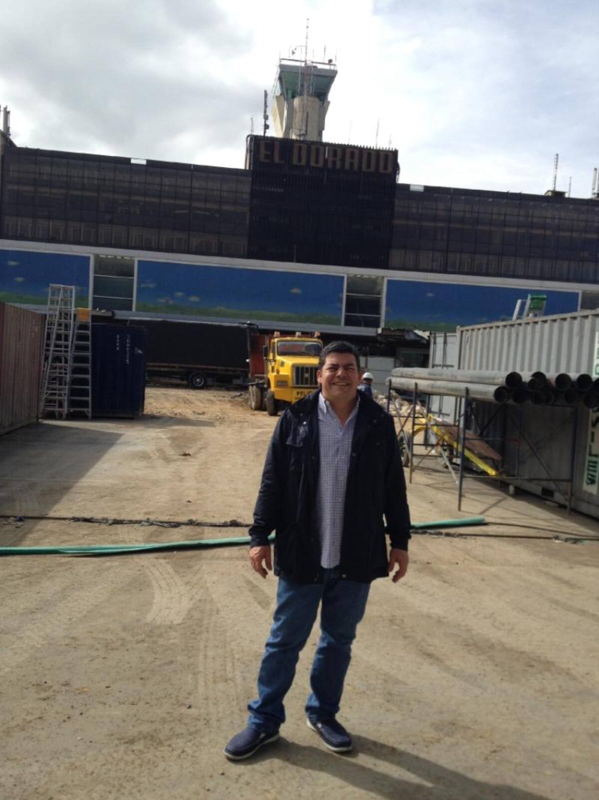 Gustavo Gómez y la vieja torre de control. En poco tiempo, ese edifico viejo será demolido. Foto: Caracol Radio.