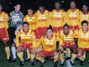 Arriba de izquierda a derecha: Antonio Moreno, Luis Barbat, John Jairo Mejía, Jorge Dacosta, Frank Rengifo, Jorge Ramírez y Héctor PoloAbajo en el mismo orden: Rubén Darío Hernández, Fabián Martínez, Gonzalo Martínez y Héctor Acevedo