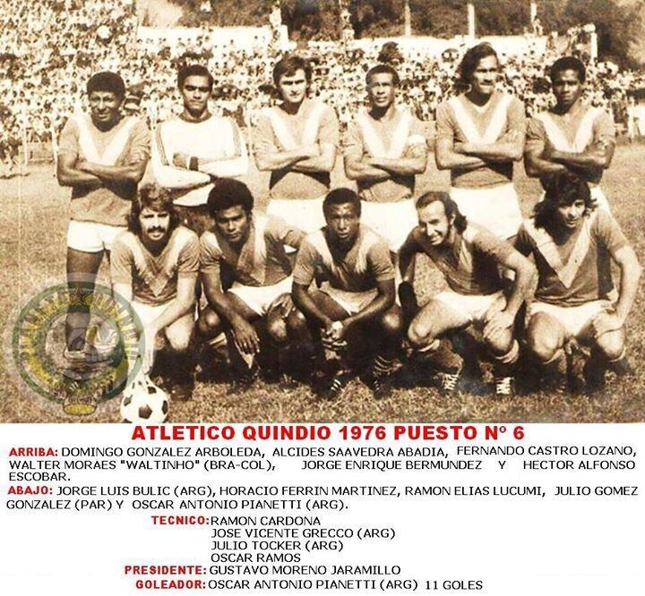 Arriba (Izq-Der) González, Alcides Saavedra, Pecoso Castro, Waltinho, Jorge Bermúdez y Héctor Escobar. Abajo (Izq-Der) Bulic, Horacio Ferrín, Ramón Lucumí, Julio Gómez y Óscar Pianetti.