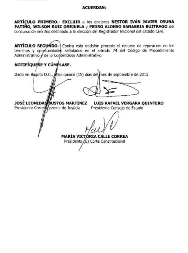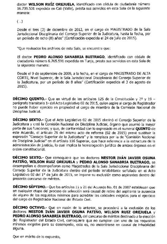 Wilson Ruíz Orejuela, Pedro Alonso Sanabria y el exmagistrado Néstor Osuna, no podrán aspirar a ser reemplazos de Carlos Ariel Sánchez.