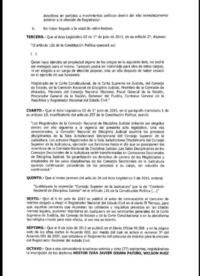 Vea la decisión que excluye a magistrados del concurso para registrador nacional