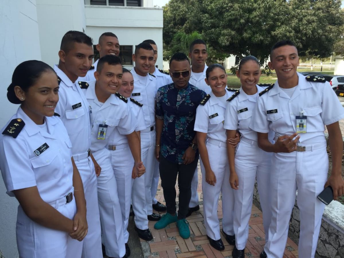 El cantante comparte con los miembros de la Escuela de Cadetes