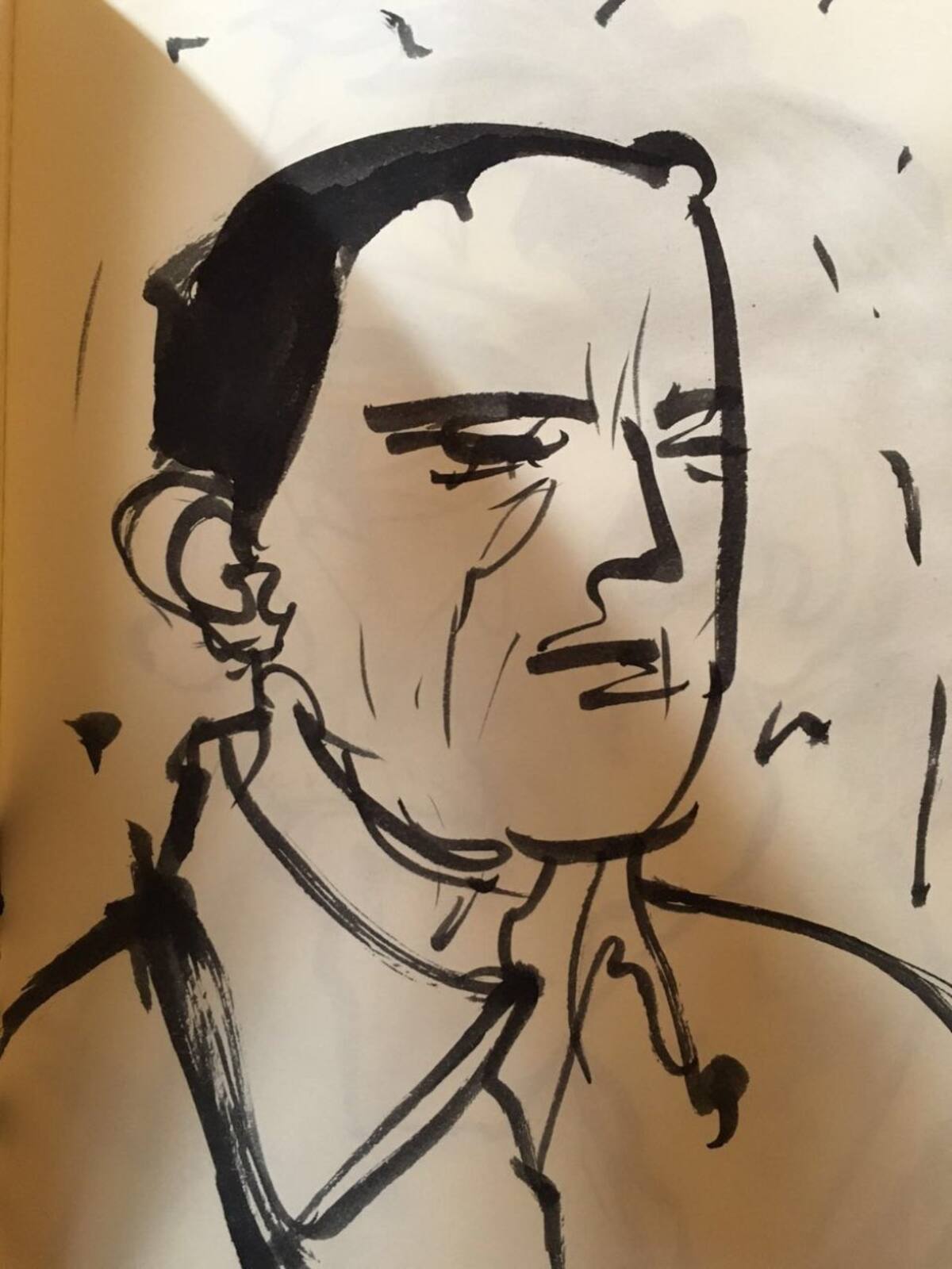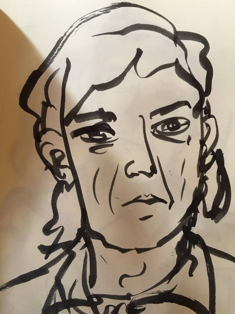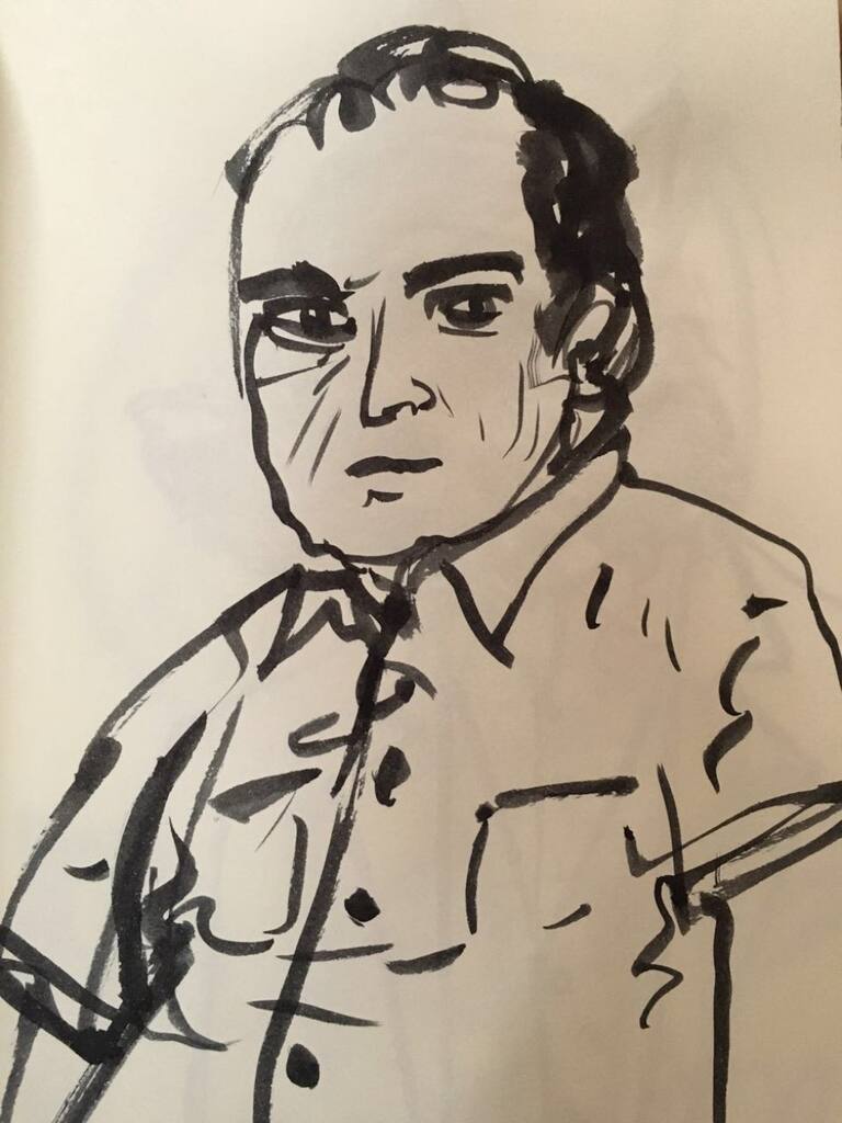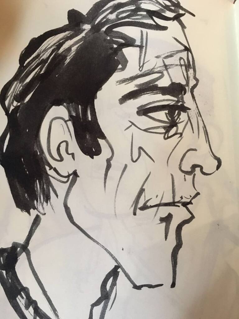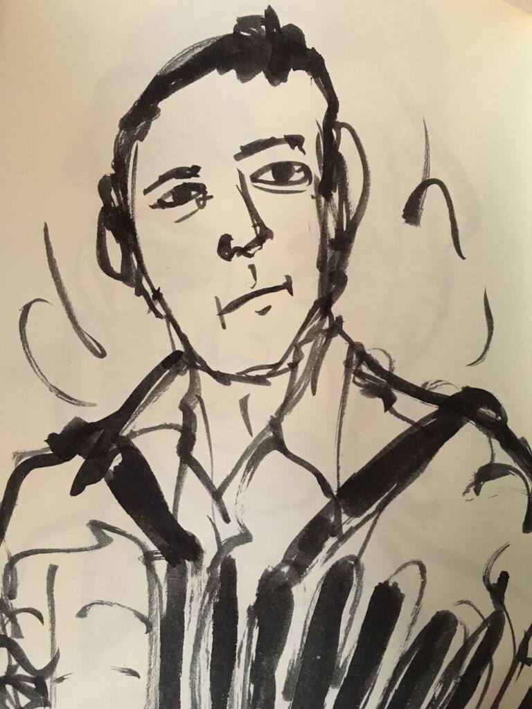 Esta nueva colección de dibujos juega con una mezcla de hombre/animal, entre otros retratos y un colorido árbol que une a Santiago de nuevo con lo natural.