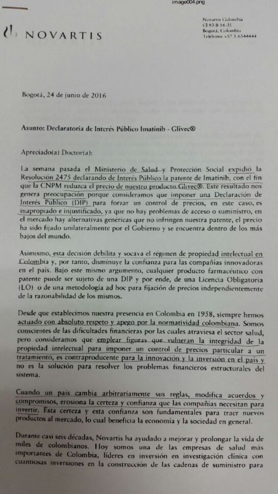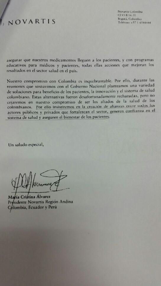 Aquí la carta de Novartis: