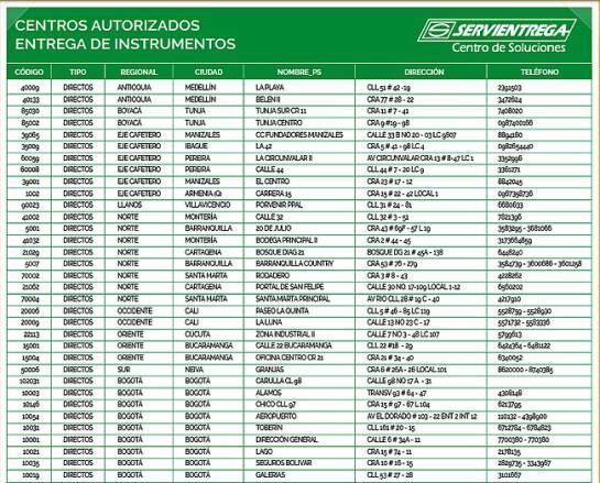 O en los siguientes centros Servientrega autorizados: