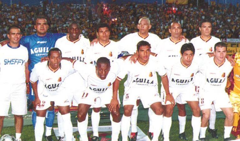Parados de izq a der: Diego Gómez, Arley Dinas, "Cocho" Patiño, Justiniano Peña, Ricardo Ciciliano, Giovanny García. Abajo en el mismo orden: Fredy Hurtado. Rogeiro Josué Pereira, Oscar Passo, Oscar Briceño y Jorge Ricardo Artigas