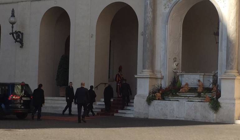 Posteriormente se dará un encuentro conjunto con la presencia del presidente Juan Manuel Santos, que minutos antes se reunió con el sumo pontífice por 30 minutos.