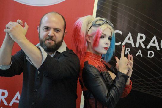 Irina Meier estuvo en la cabina de “Dos y Punto” dejando a más de uno boquiabierto, la rusa estaba vestida como ‘Harley Quinn’, la supervillana y anti-heroína ficticia del mundo de DC Comics.