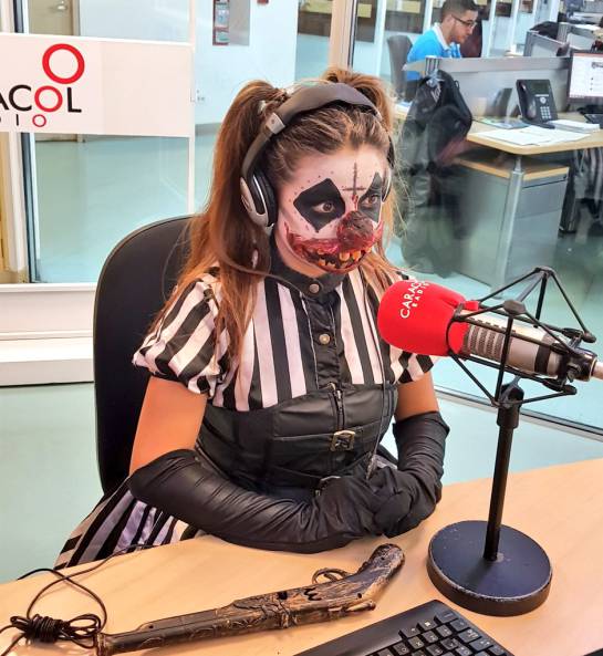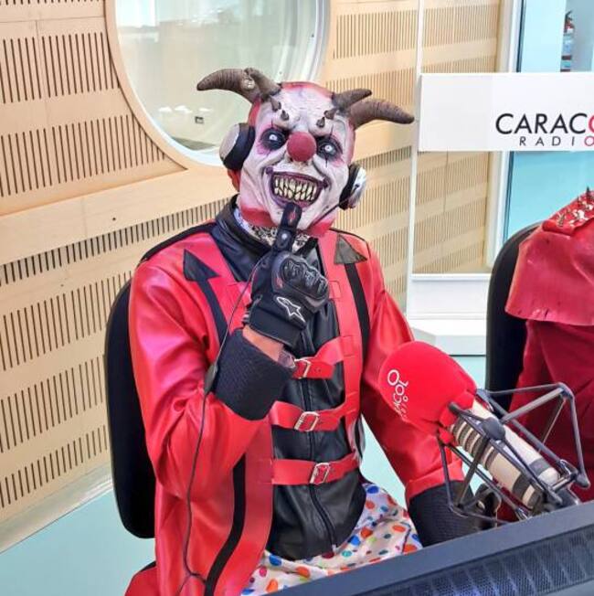 Con un aspecto terrorífico, el payaso Billy y su novia Kim estuvieron en los estudios de “Dos y Punto” hablando sobre el Festival del Terror: “habrá shows itinerantes, zombies, hombres con motosierras, payasos asesinos y las 6 casas del terror”.