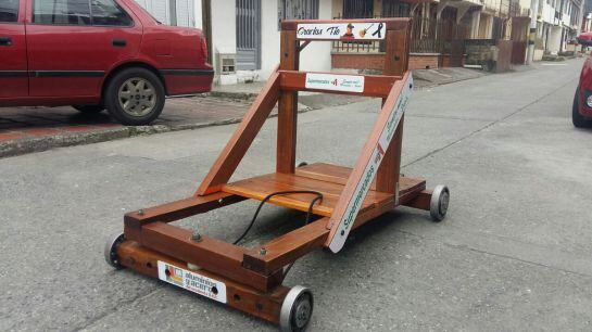 Carlos Alberto Ocampo también describió la forma del carrito que utiliza para esta competencia, “es un carro 100% de madera, lo único metálico son los rodamientos y los tornillos. El carrito no tiene frenos, el copiloto es el que se encarga de eso”.
