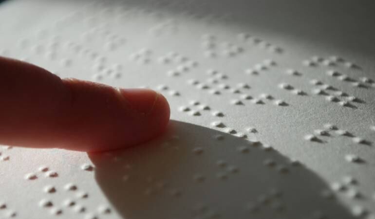 El director del Instituto Nacional para Ciegos, Carlos Parra, presenta el calendario en braille para la población con discapacidad visual.