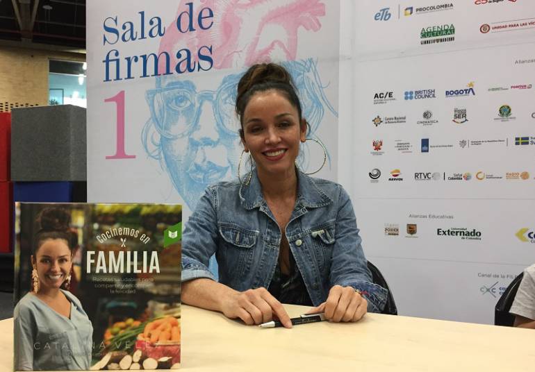 La chef colombiana Catalina Vélez presentó en la Feria del Libro de Bogotá Cocinemos en familia, su libro de recetas de cocina de platos ricos y salud