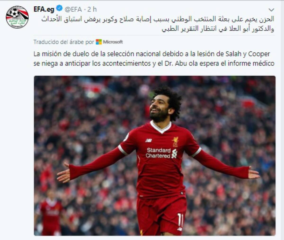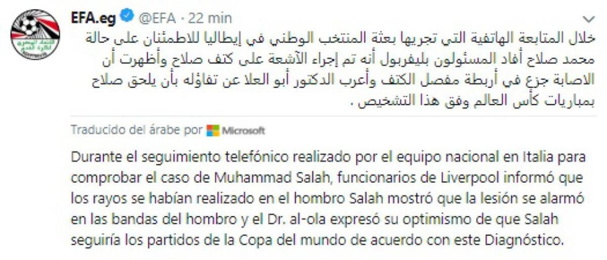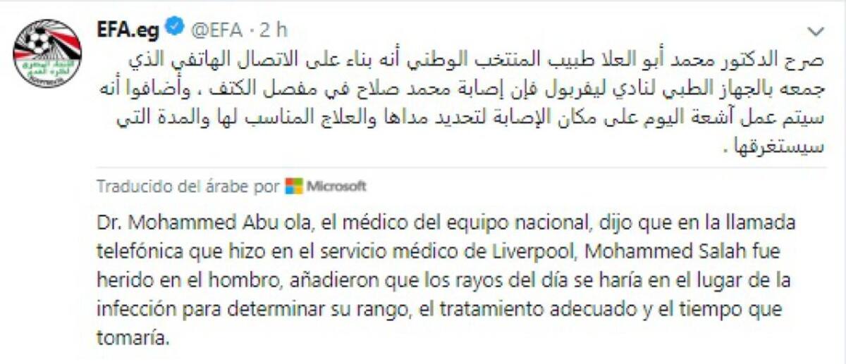 Este es el comunicado de la Federación Egipcia sobre la salud de Salah