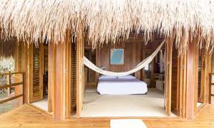 Este condominio contiene 55 cabañas, unas están a la orilla del mar y otras están elevadas del mar. Cada cabaña es para dos personas.