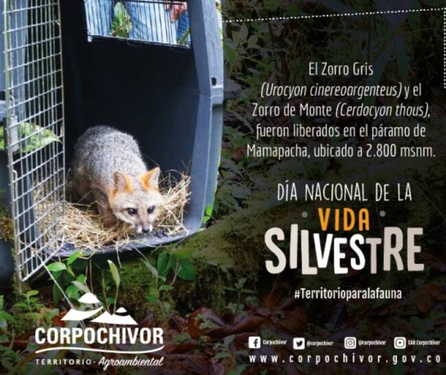 El biólogo Jaime Mauricio Otálora Aldana, coordinador del proyecto de protección, recuperación y manejo de la biodiversidad y de los ecosistemas estratégicos de Corpochivor, explicó en Al Campo, de Caracol Radio, el proceso de liberación de los dos zorros en la región, uno gris y otro de monte.