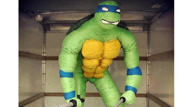 La tortuga ninja también hizo parte del museo de “Aunque usted no lo crea” de Ripley. Además otras obras como una Jennifer Lawrence hecha en maní o el retrato de John Lennon con pelos de perro.