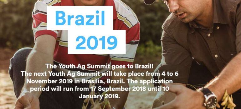 Si usted, su hermano, su hijo, su vecino o su conocido es un ser apasionado por el agro, le preocupa el futuro de la alimentación en el planeta y tiene vocación emprendedora, podría hacer parte del grupo de 100 jóvenes que se reunirán entre el 4 y el 6 de noviembre de 2019 en Brasilia, la capital de Brasil.