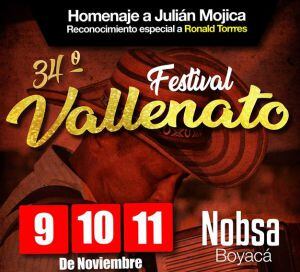 Se desarrolla en este puente festivo el Festival Vallenato Nobsa 2018 en su versión #34, este año cuenta con destacadas figuras del vallenato como Peter Manjarrés, Nelson Velásquez, Penchy Castro, y como gran homenajeado Julián Mojica el actual “Rey Vallenato” del Festival vallenato de Valledupar que estará en el escenario al lado de su compañero Enaldo Barrera.
