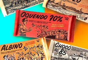 Cada tipo de chocolatina en barra tiene un sabor y personalidad por ejemplo la chocolatina Albino es la más dulce, mezcla de chocolate blanco con Cacao Tostao, en la imagen aparece el padre de Joel y la chocolatina Okendo que es la barra más vendida, en la imagen aparece la mamá; los dos son agricultores cacaoteros del río y representan muy bien el mundo cacaotero de la región.