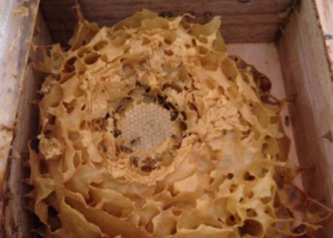 Interior de una colmena racional de melipona. Diferente a la abeja tradicional del apicultor.