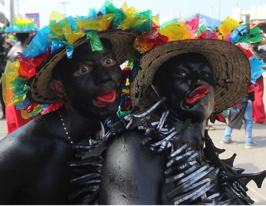 Con muecas y lenguas rojas, la Danza Son de Negro hacer parte del Carnaval de Barranquilla.