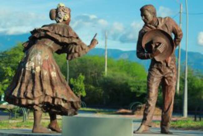 "La Bambuquera", Monumento elaborado por el maestro Fernando Núñez, representa el sexto paso del baile del sanjuanero huilense "La arrastrada del ala".