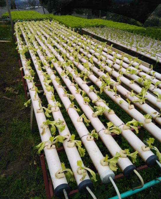 Para los cultivos se necesita una infraestructura sencilla, basada en soportes de madera sobre los que se colocan tuberías de 2 a 3 pulgadas, a las que se les abre huecos con 25 centímetros de distancia entre sí, donde se colocan las plántulas de las lechugas, que compra en una finca cercana.