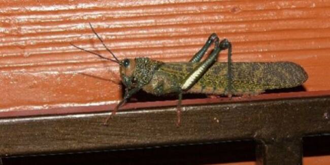 Luego la Familia Romaleidae. Está es la langosta neotropical de mayor tamaño que se conoce, el largo del cuerpo puede alcanzar los 8 cm de longitud. Y entre 15 y 18 cm. de envergadura alar. (Muy devastadora cuando sus poblaciones alcanzan los niveles de plaga).
