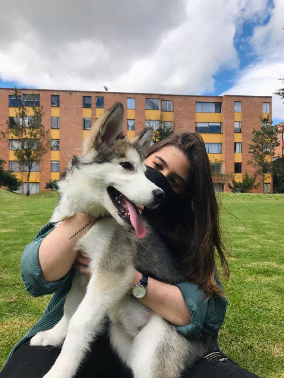 ¡Siempre protegidos! Cuidémonos entre todos en esta época de cuarentena // Manuela Barrientos, Periodista Digital de Caracol Radio junto a Ginebra, una Alaskan Malamute de 4 meses.
