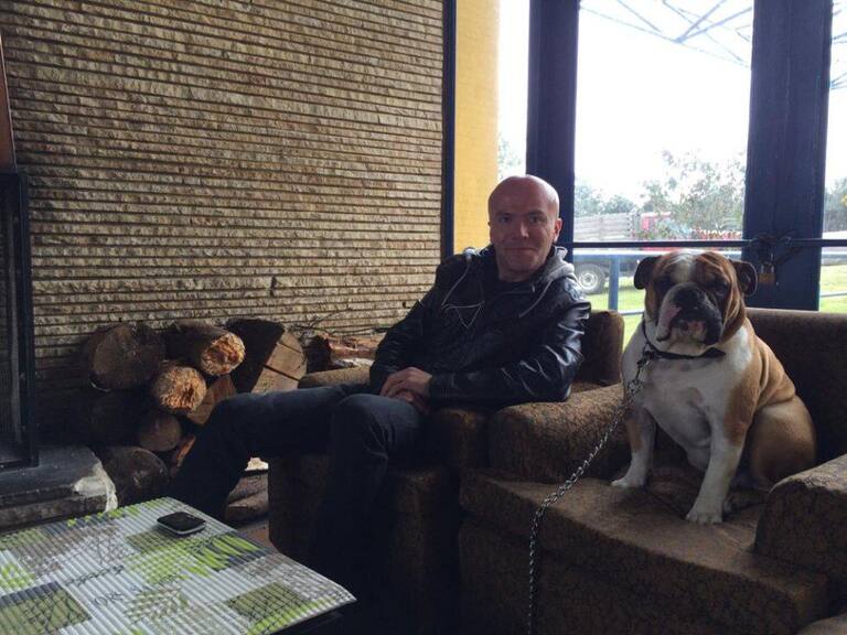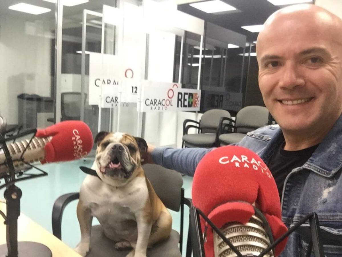 Fidel Franco, editor de Caracol Radio y director de 'Planeta Caracol' junto a Jim Morrison, un Bulldog Inglés.
