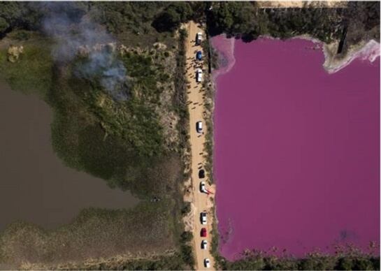 En la localidad paraguaya de Limpio, hay una empresa que lleva contaminando la laguna Cerro. Los vecinos de la zona han denunciado la actividad de Waltrading SA, una empresa dedicada al cuero, por vertir sus desechos a la laguna sin ningún tratamiento. Las aguas de la laguna son ahora de color morado.