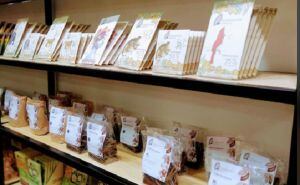 En la tienda se puede consumir o pedir por domicilio barras, bombones, trufas, bebidas, pastelería, repostería y paletas; lo importante es que la gente sepa que no se trata de golosinas se trata de productos que en su mayoría ofrecen beneficios para la salud por su aporte en vitaminas, minerales, antioxidantes, entre otros. Chocolate con jengibre, pan de chocolate, hojaldre, chocolate con picante, bebidas con adiciones de naranja, productos con dulce y sin azúcar, además de buenas alternativas para la lonchera de los niños. Cada uno de ellos habla de su origen por su sabor, aroma o textura provenientes del Tolima, Caquetá, Arauca, Nariño, Magdalena, Antioquia y Huila.