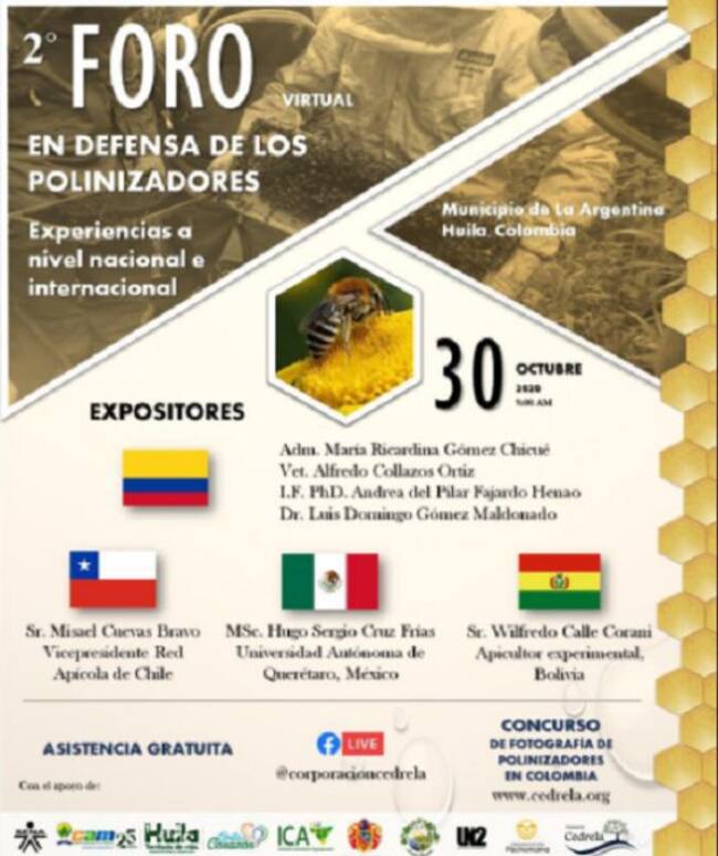 Para repasar esta situación, expositores de Colombia, Bolivia, Chile y México participarán en el segundo foro virtual en defensa de los polinizadores, que se realizará a las 9 de la mañana de este viernes, 30 de octubre de 2020.