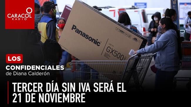 Fuentes consultadas por Caracol Radio confirmaron que el presidente, Iván Duque anunciará esta tarde que la última jornada de Día SIN IVA se realizará el próximo sábado 21 de noviembre. El Objetivo será adelantar las compras navideñas y evitar aglomeraciones para el mes de diciembre. Se tiene listo un plan que incluye otras acciones para la reactivación económica que anunciará el presidente en su programa de las tardes de 'Prevención y Acción'.