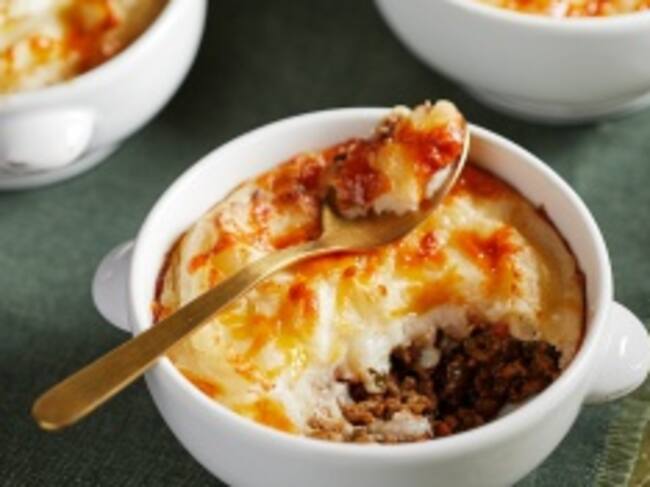 2. Poner el puré de papa encima de la carne, con capas del mismo grosor.