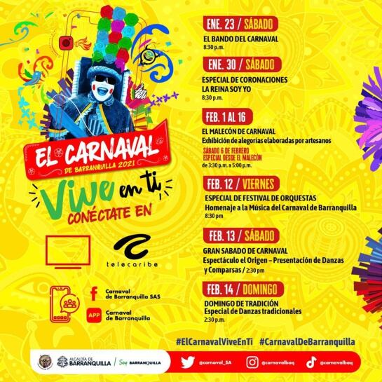 A través de las redes oficiales del Carnaval de Barranquilla se podrá seguir la agenda virtual de uno de los eventos más importantes del país.