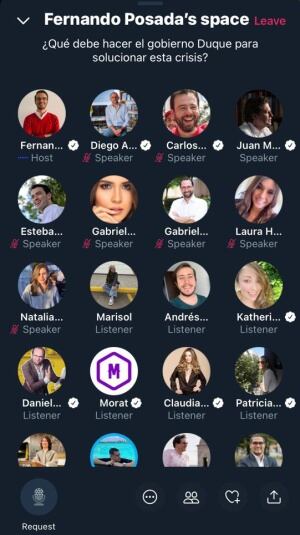 Sobre las 10:00pm de este miércoles 5 de Mayo, el politólogo Fernando Posada abrió un Space de Twitter, la nueva herramienta de esta red social en la que varias personas se conectan en tiempo real y pueden ir dialogando sobre un tema en una sala de audio.