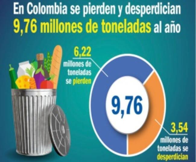 Recordó estadísticas de Planeación Nacional, hechas en 2016, según las cuales en ese momento se perdían o desperdiciaban 9.7 millones de toneladas de alimentos, de las cuales, 6.2 millones se perdían en la cosecha, postcosecha, almacenamiento y distribución mayorista, y otras 3.5 millones de toneladas se desperdiciaban en la distribución minoritas, la manipulación doméstica, los servicios de alimentación y similares.