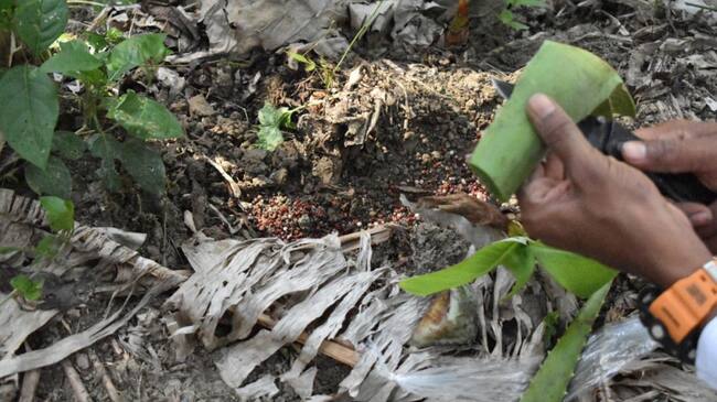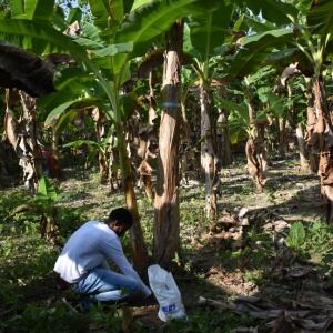 Aplicación del gel biológico para fertilizar cultivos de plátano durante periodos secos(Foto: cortesía UNAD)