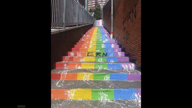 La escalera fue manchada con pintura y en las paredes laterales, los responsables escribieron mensajes homofóbicos.