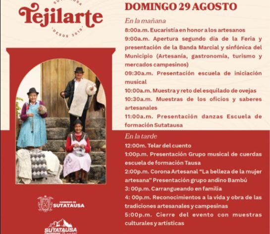 El municipio de Sutatausa en Cundinamarca realiza hoy sábado 28 de agosto y mañana domingo 29, la IV versión de “Tejilarte 2021” el Festival Artesanal de Oficios y Saberes Ancestrales.