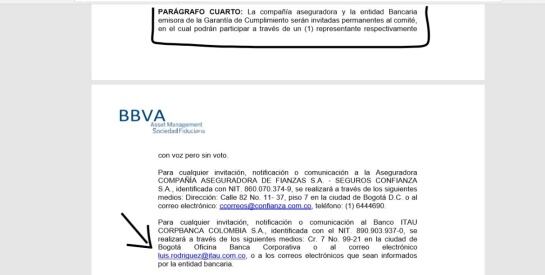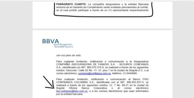 Que ellos cumplieron lo que dice el contrato de la fiducia y sí enviaron la notificación de la reunión al correo que les dio el propio contratista: o sea, que fueron los responsables de Centros Poblados, su representante legal, hoy detenido, quienes dieron al banco el correo falso, el mismo que ya habían usado en diciembre.