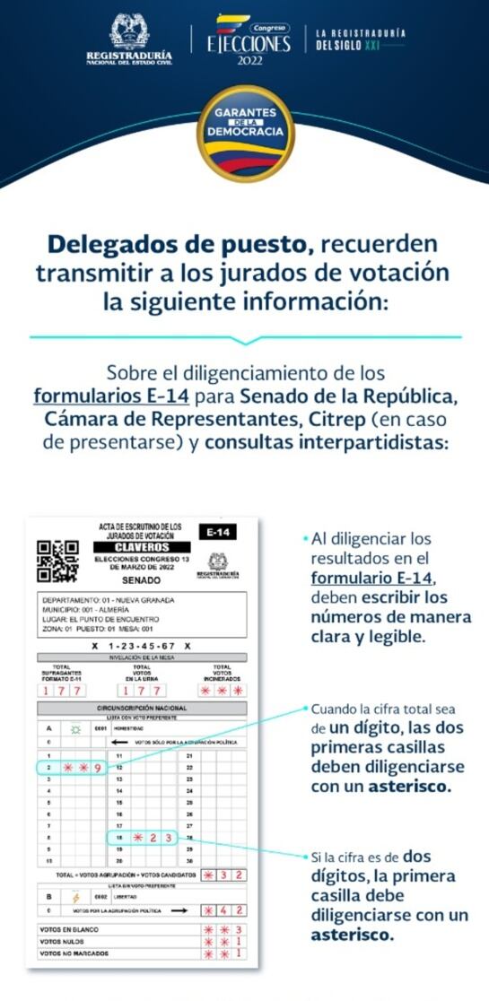 Como las capacitaciones ya se habían dado, ¿qué debían hacer entonces?, ¿cómo se iba a dar esta nueva instrucción de no llenar con rayas, sino con asteriscos los formularios?. Muy sencillo para la Registraduría, debían dar instrucciones a los delegados para que minutos antes de la apertura de las mesas avisaran a los jurados.