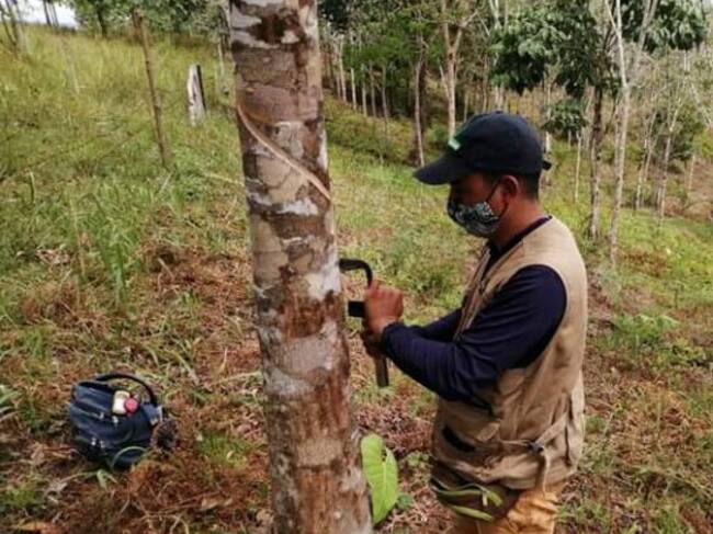 Es una tarea intensa, que se está desarrollando en las familias, con acciones manuales para la extracción del caucho, para lo cual han recibido apoyo del programa El Campo Emprende, del Ministerio de Agricultura.